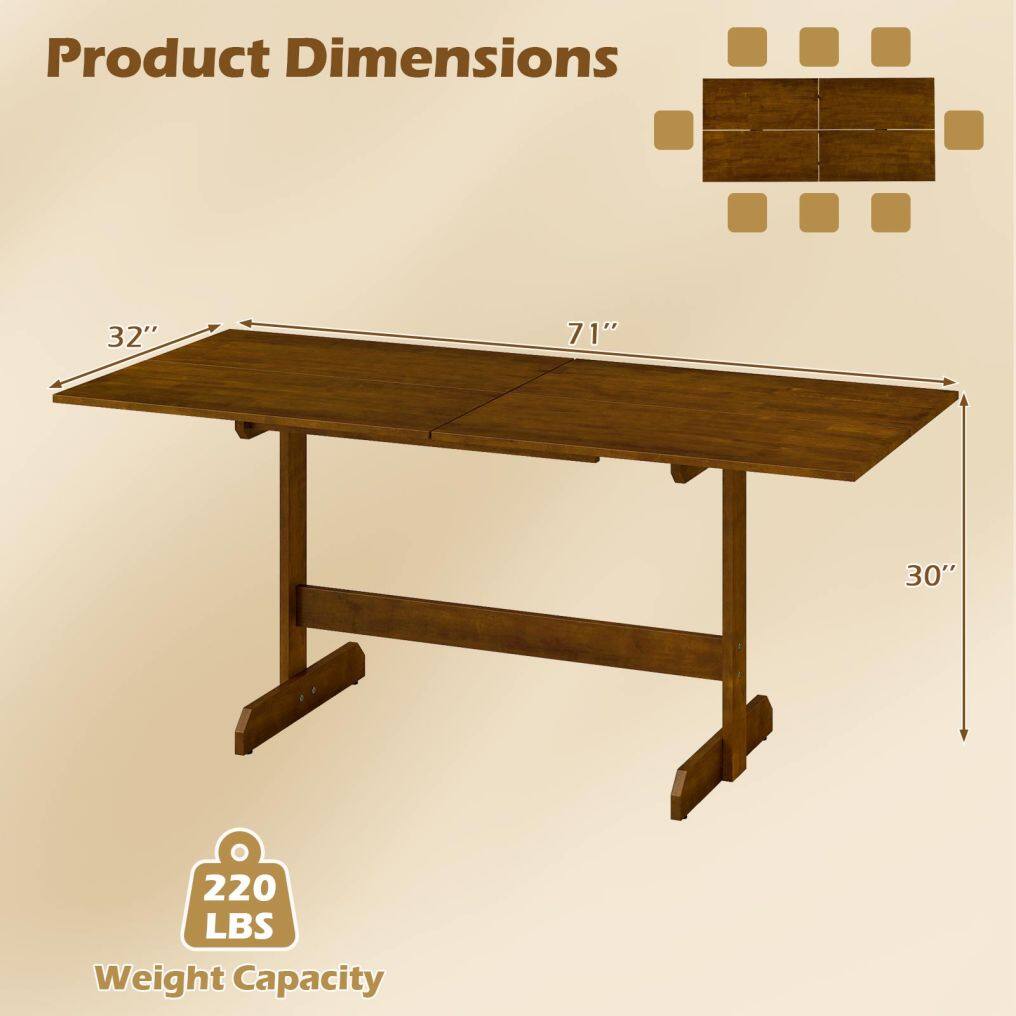 ● Seats 6-8 Comfortably: The wooden tabletop boasts a 71" x 32"/180cm x 81 cm (L x H) large space that offers a comfy dining area for 6-8 people. It provides enough room so that every guest enjoys their meal without feeling cramped, making family gatherings and celebrations more inviting and memorable.