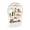 ● Luxury Geometric Bookshelf: Blending with round silhouette and staggered shelves, this bookshelf exudes a high-end and elegant feel. The combination of gold lacquered metal frame and whiteboard adds sophisticated flair to your home.
