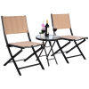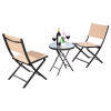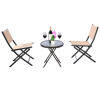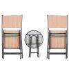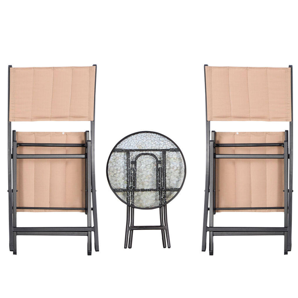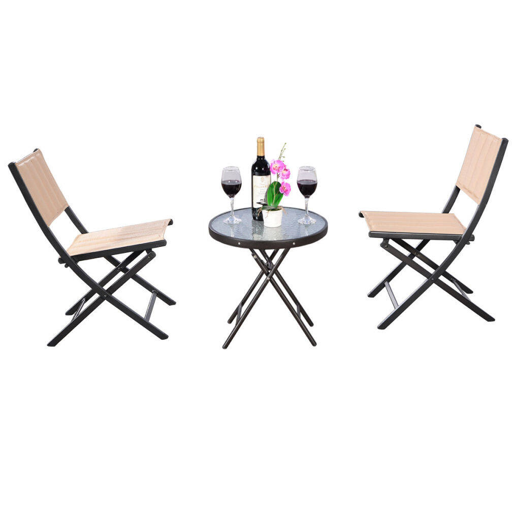 Made of durable powder-coated steel and textilene, the seats are protected from scratch and the surface of the seats are soft. The cushions are made of UV resisted fabric without fading. The folding design of the table and chairs can save space, they can be folded away when not in use. The furniture set is lightweight and portable, which is easy to carry and store.