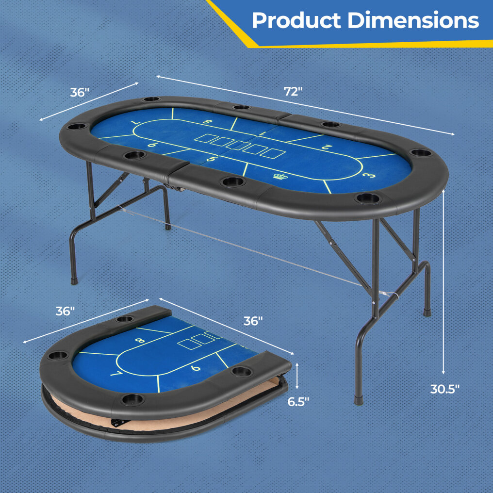 ● No Assembly Required: Simply open the package, unfold the frame, and you're ready to start the game! Measuring 72" x 36" x 30.5" (L x W x H), it's the perfect size for 8 players. The table can be folded into a compact size for easy storage when not in use, making it a space-saving and convenient choice for any gaming setup.