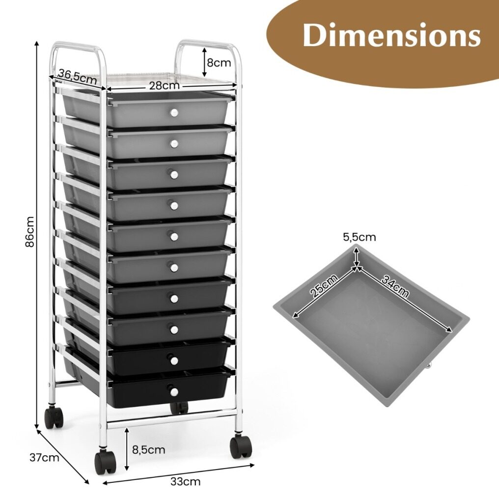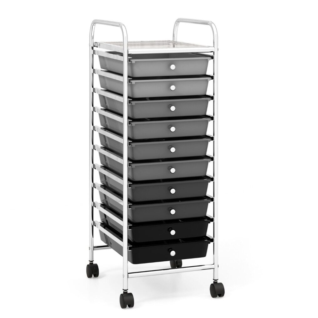 10 Drawer Rolling Storage Cart Organizer with 4 Universal Casters-Gradient Gray
