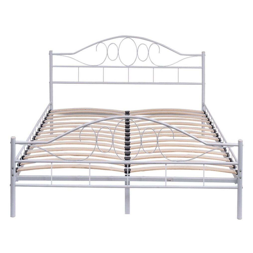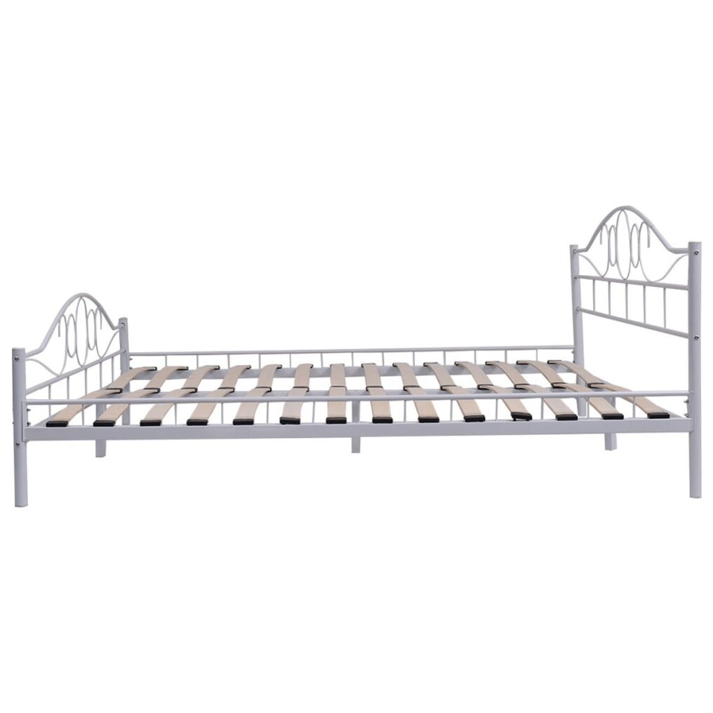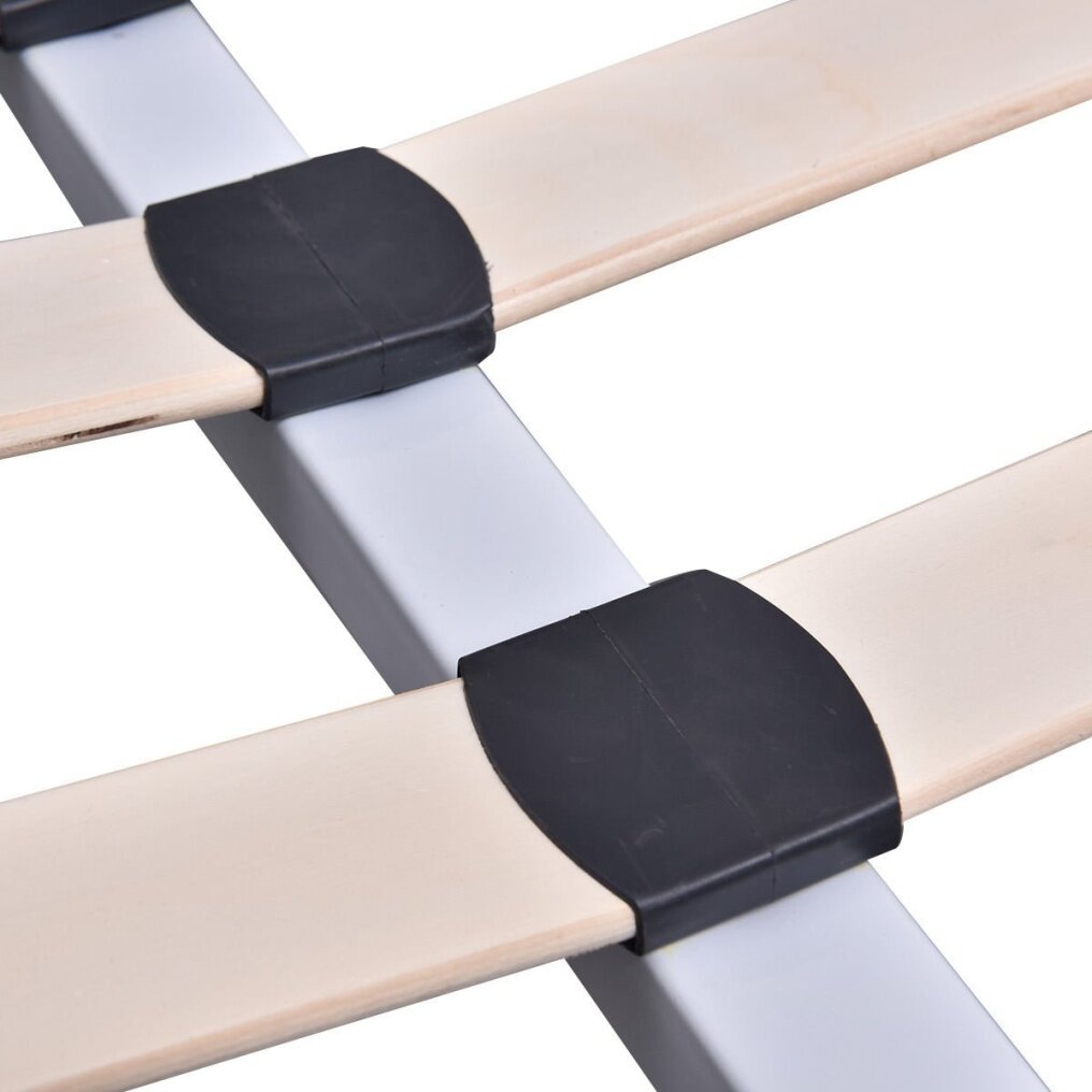 The bed features eco-friendly wood slats and has exquisite workmanship. The black steel and artistic headboard design make this bed frame perfect decoration for any bedroom. Made from solid metal and strong wood slats, the bed ensures you a long-term service life. The center support leg of the bed frame makes it sturdy and durable.
