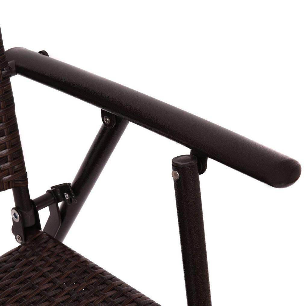 With steel frames, these rattan chairs are high quality and can serve you a long time. Footrest and armrest make you feel extremely comfortable when seating on it. Moreover, the chairs are foldable for easy storage and transport.