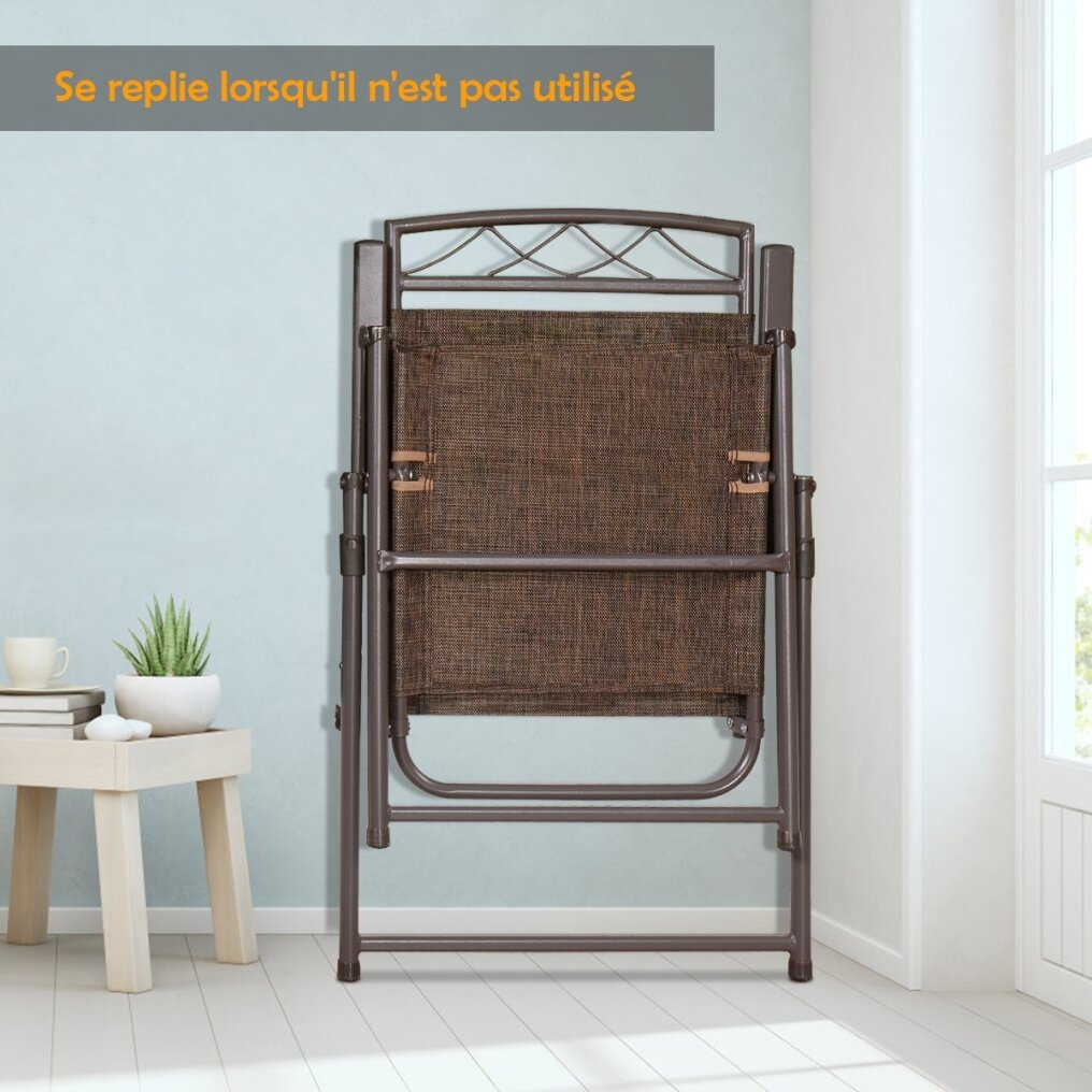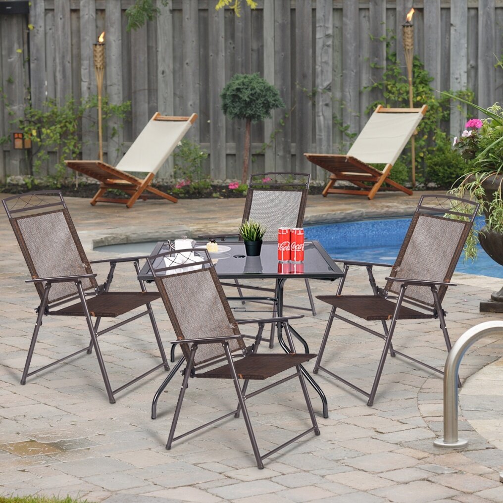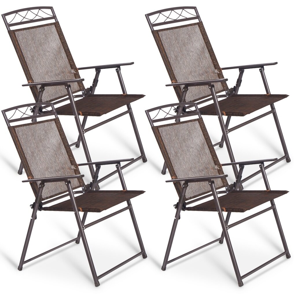 Set of 4 Patio Folding Chairs: The sleek folding chair set is an excellent addition to your patio or gardens when enjoy sunbathing during the good summertime. Featuring a sturdy but lightweight folding design, the garden chairs provide extra support and ensure long-lasting use.