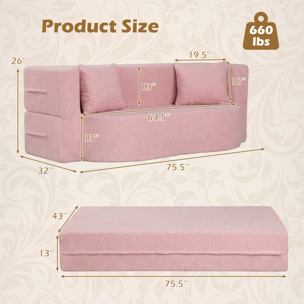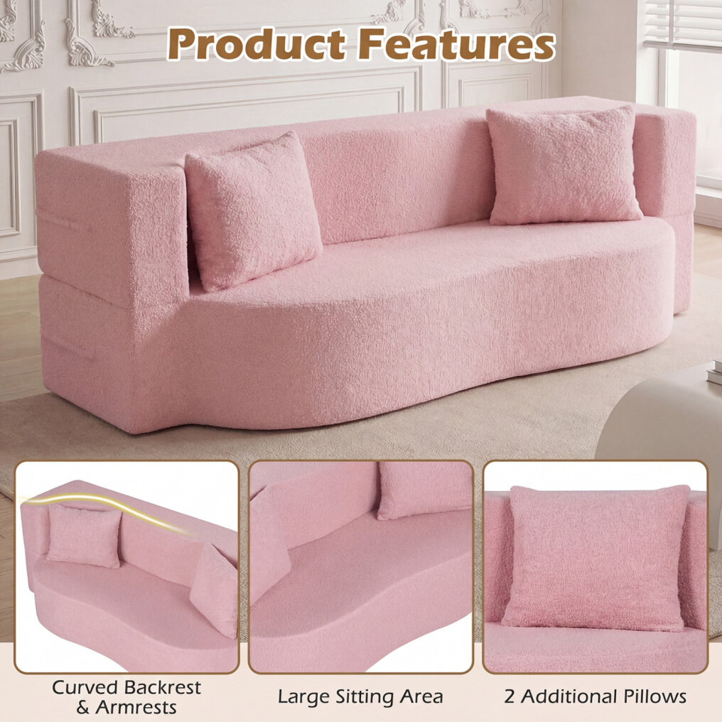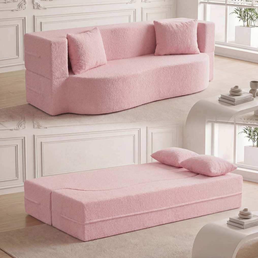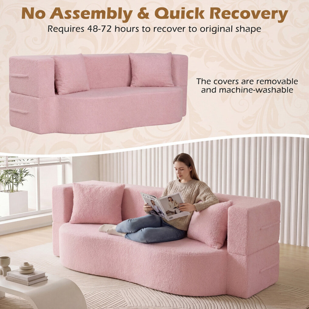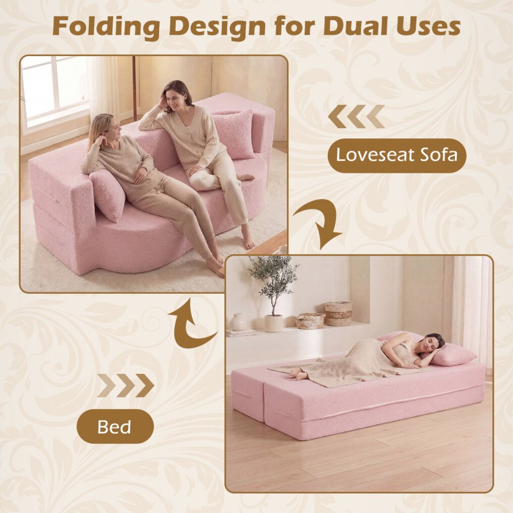 ● Comfy Teddy Fleece Covers: Upholstered in ultra-soft teddy fleece fabric, this sofa bed provides a cozy and warm touch, perfect for you and your family members to relax. The removable teddy fleece covers of sofa and pillows are also machine-washable, making cleaning a breeze.