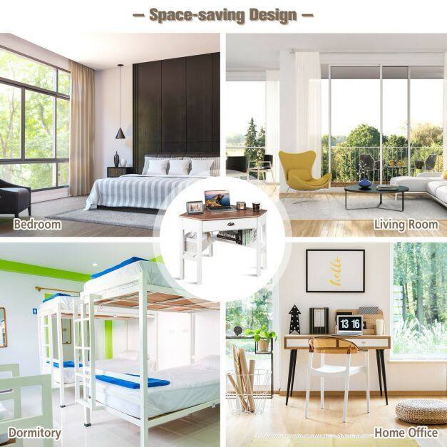 Space-Saving Compact Corner Table: Compared to other regular desks, this corner table takes up less space and maximizes space in compact rooms to provide extra space for your work and study. It takes full advantage of interior space to make your room more organized and tidier, making it suitable for studios, dorms, bedrooms, etc.