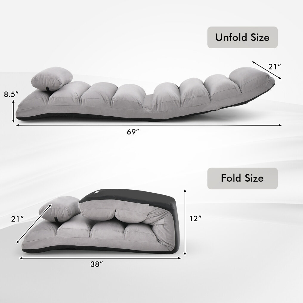 Comfortable Leisure Chair: The folding lazy sofa is soft and comfortable with thick padded sponge cushion. And the floor couch is covered by faux suede, promoting the sense of touch and comfortable sitting experience. In addition, the measurement of the sofa is 69" x 21" x 7" (L x W x H), which is wide enough for majority of individuals.