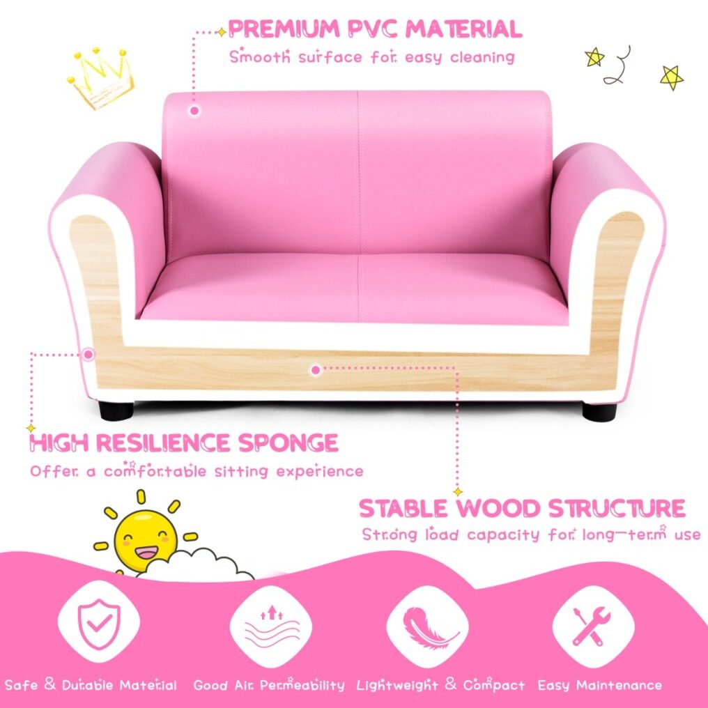 Sturdy and Durable Construction: Supported by a solid wooden frame, this children couch ensures strong stability and durability for long lasting use and can hold up to 2 babies. 4 high plastic feet provide strong support and protect the sofa from moisture.