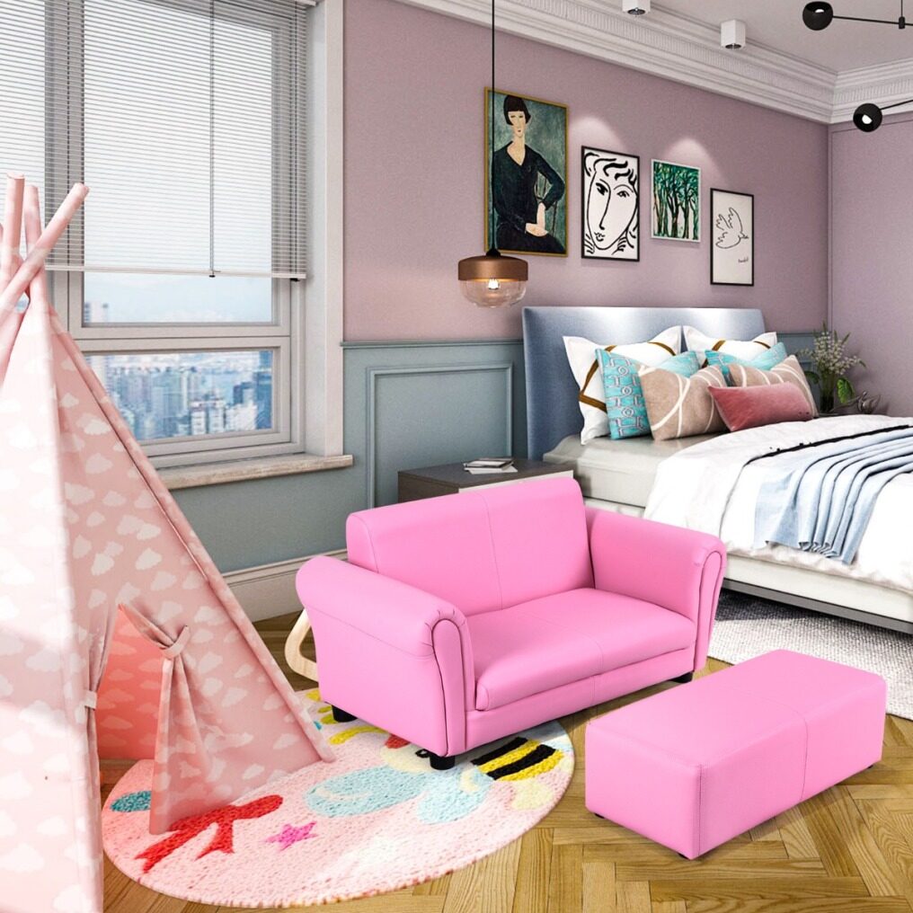 This elegant 2 seat children sofa with ottoman is a perfect gift for your kids!