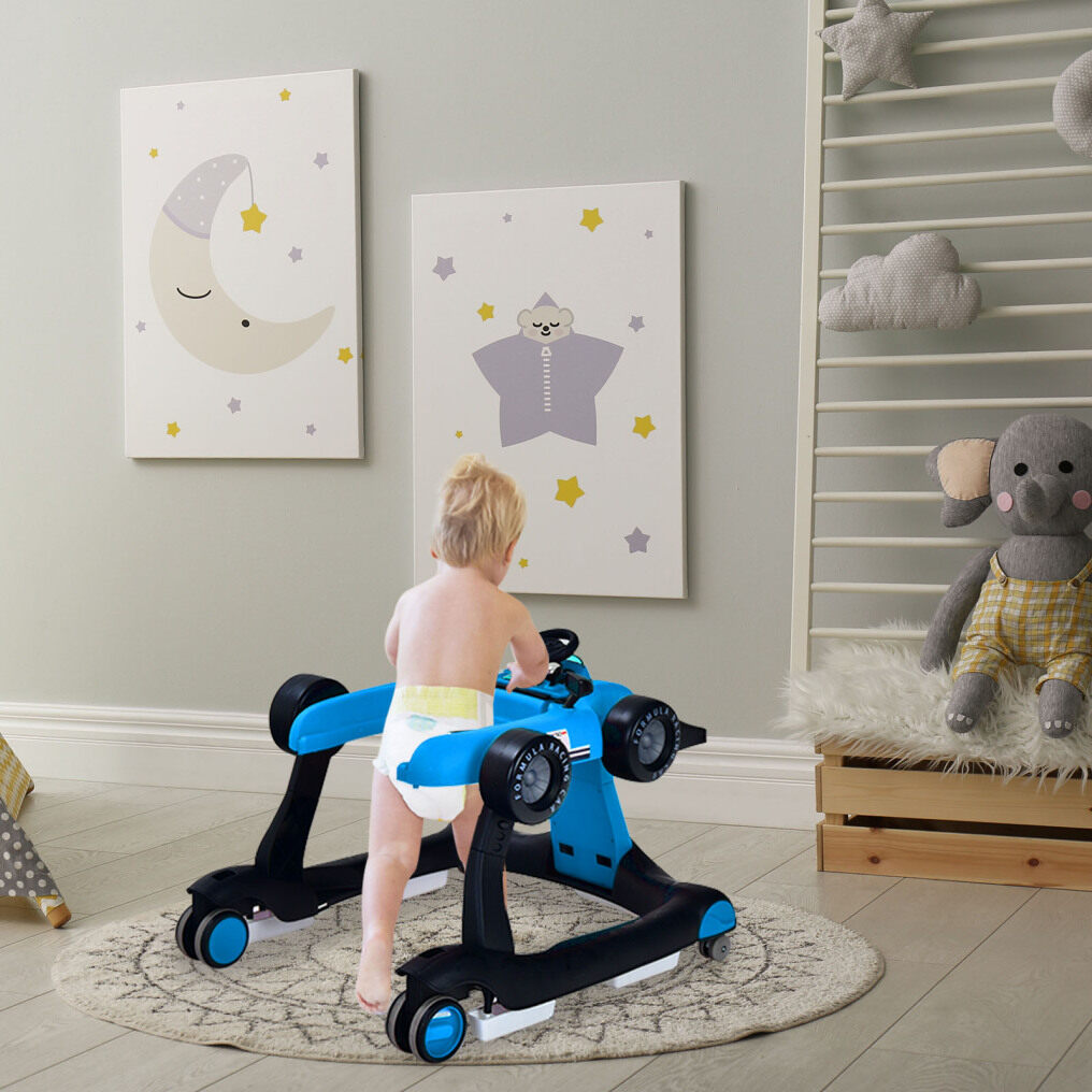 ● 5-in-1 Adaptive Design: This baby activity center offers 5 different modes that are baby walker mode, push-behind mode, push car mode, rolling toy car mode and early education mode. Transitions seamlessly from an infant walker (6-12 months) to a toddler push car (12-18 months), fostering baby balance, coordination, and leg strength.
