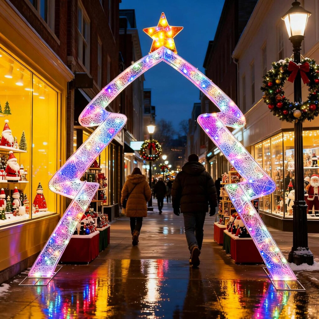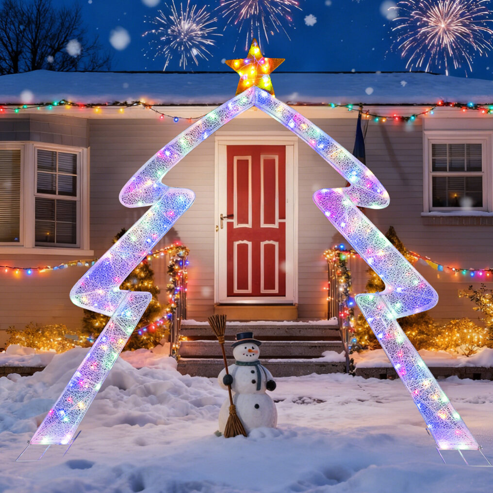 ● Nice Christmas Archway: Featuring top star decoration and Christmas tree shape, the outdoor archway adds a festival atmosphere. The Christmas archway also creates a warm and inviting entrance for your guests.