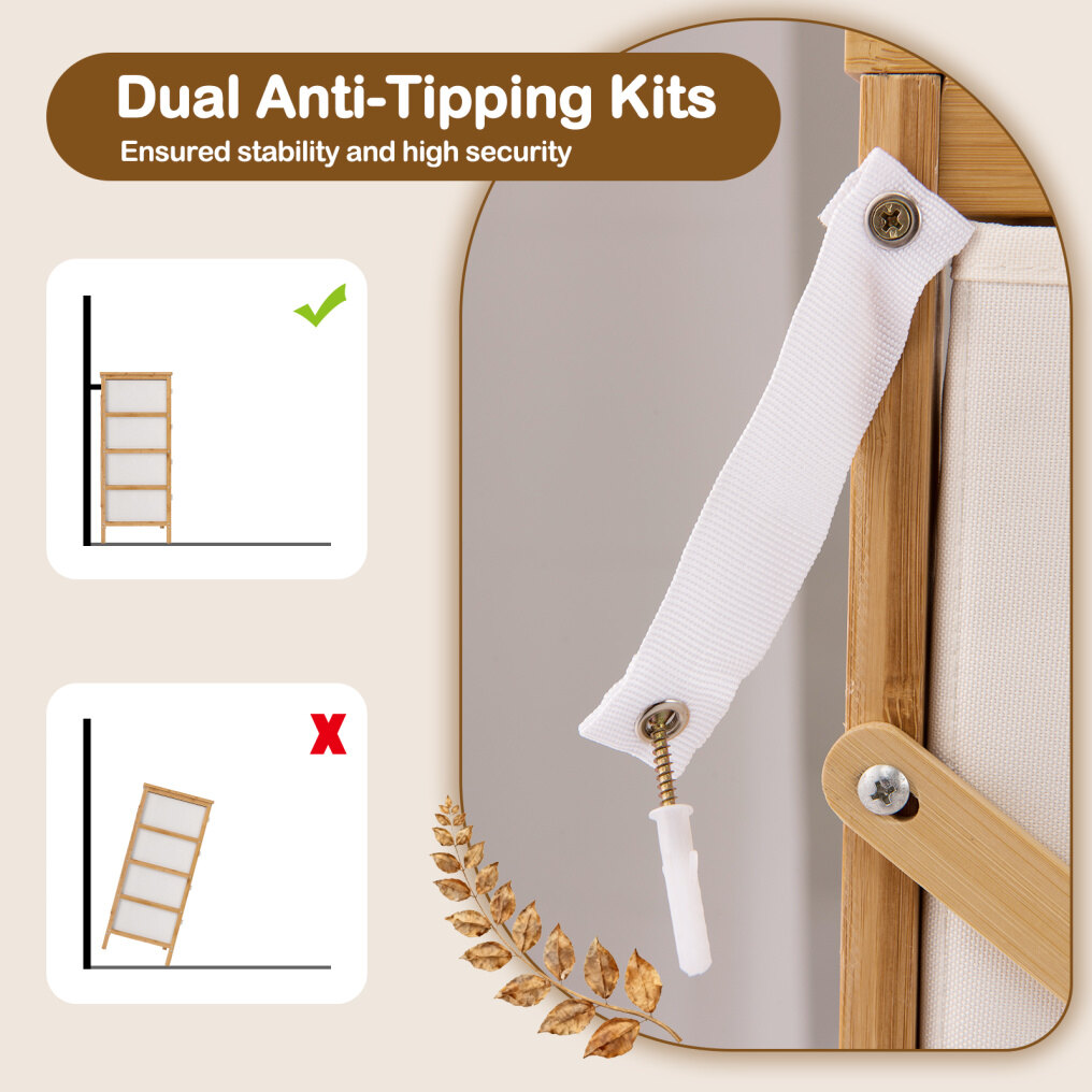 ● Enhanced Safety Features: Keep your home safe knowing that the storage organizer includes dual anti-tipping kits, designed to secure the dresser to the wall. It is perfect for family use, giving you peace of mind in any room.