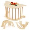 ● Stability & Security Coexists: Prioritizing your child's safety, this wooden rocker toy boasts built-in stoppers to prevent tipping. Moreover, you can install the anti-rollover devices on the climbing arch or sensory table, providing a stable and secure environment for play sessions.
