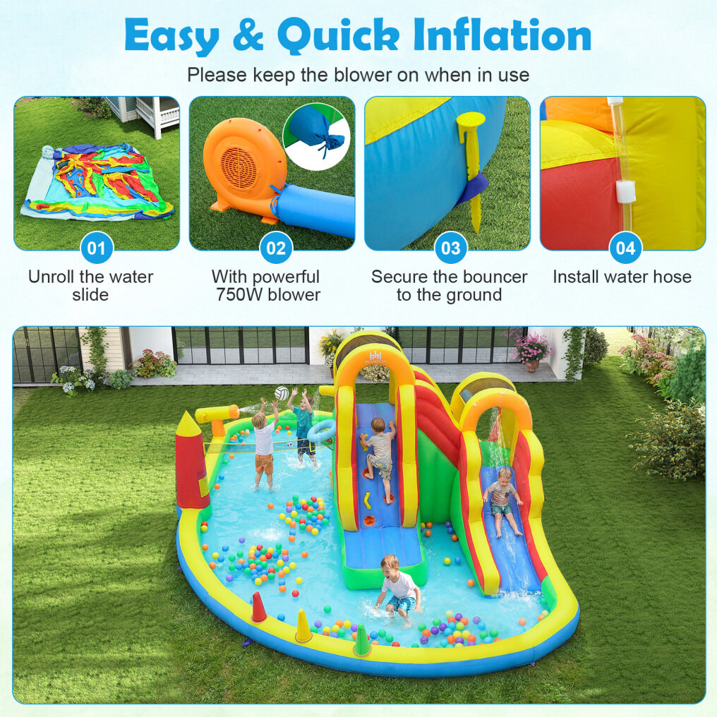 ● Easy & Quick Inflation: This giant water park inflates rapidly with powerful 750W blower, allowing your kids to start the fun in no time. Perfect for family gatherings, birthday parties, and playdates, this inflatable slide brings endless fun for kids.