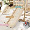This wooden Montessori climber set provides endless fun with its monkey bars, slide, climbing rock, rope ladder, climbing net, climbing ladders, swing and rest platform. Designed with a splinter-free surface and rounded edges, the toddler jungle gym can be securely anchored with metal ground stakes to offer stability during active play. The adjustable swing ropes and ramp heights are suitable for kids of different heights. Beyond being an engaging Montessori climbing playset, it supports educational development by enhancing muscle strength, coordination, balance, and social skills, making it ideal for children aged 3 to 5 years old.