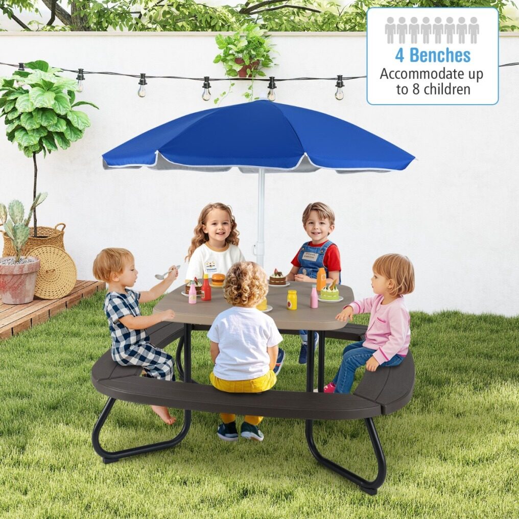 Let kids shade and play in style with our kids picnic table!
