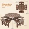 Comes with a round picnic table and 4 built-in benches, ideal for 2-8 people