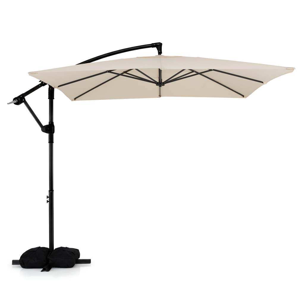 ● Enhance Stability for Your Safety: To keep you anchored and safe, this offset patio umbrella comes with 2 sandbags that could fill up to 116 lbs, securing the crossed base. And the top air vent design effectively reduces wind pressure and enhances stability.