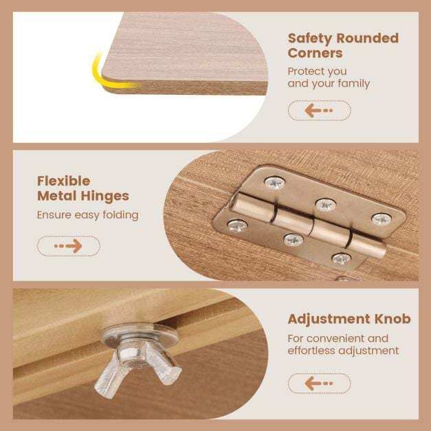 Durable Material and Sturdy Structure: Crafted from thick MDF and solid pine wood, this folding desk ensures excellent stability and durability to support long-lasting use. In addition, the sturdy triangular wooden bracket offers strong support to the entire desk with a load capacity of 40 kg.