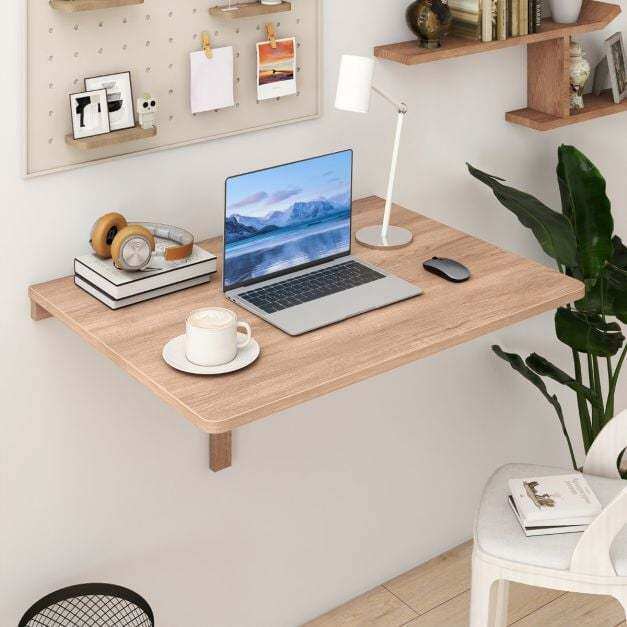 80 x 60 cm Wall Mounted Folding Table Drop-Leaf Floating Writing Desk-Coffee