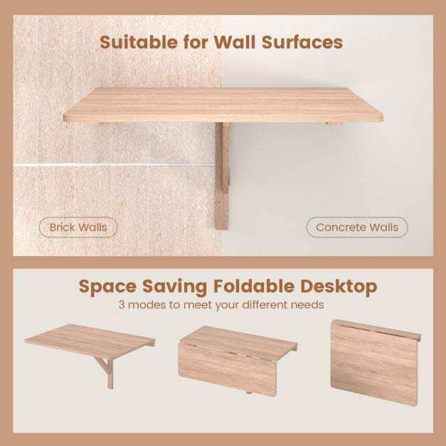 Special Double Folding Design: Compared with other folding desks with just 1 fold point, this drop-leaf table with 2 ways of easy folding will bring you much more convenience. The floating desk can be completely folded on the wall when not in use and you can also fold half of the countertop when you do not have many items to put on it.