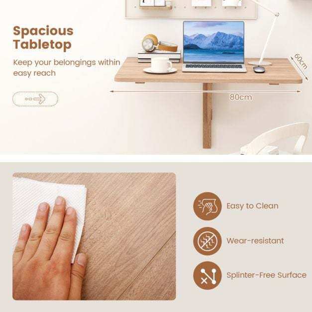 Wall Mounted Desk for Small Space: This folding table features a wall-mounted design to offer extra storage space without occupying the floor space, which is a perfect choice for limited space. Besides, the wide desktop provides ample space to hold your laptop, cups, books, snacks and more, making your room neat and tidy.