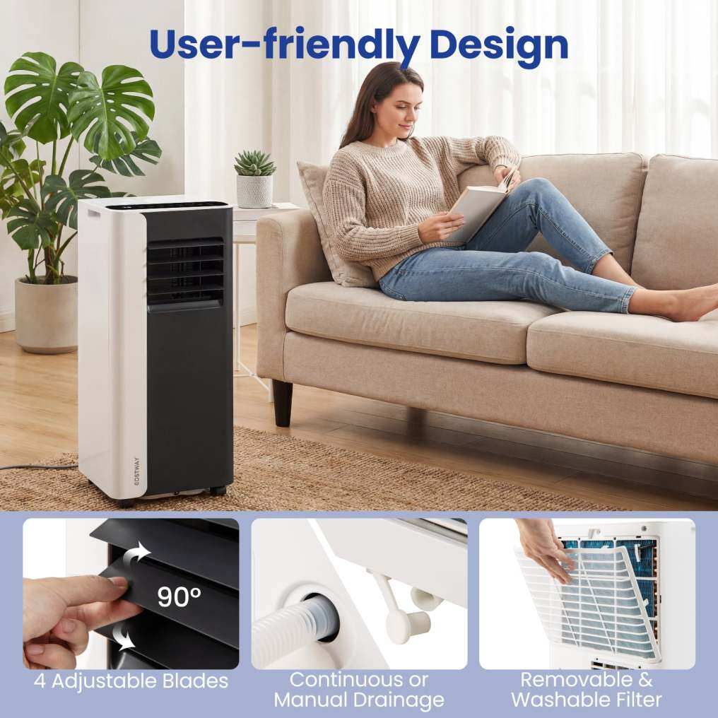 ● Convenient to Use: This portable air conditioner features dual drain outlets which offer flexible drainage options to fit your different needs, ensuring smooth operation and hassle-free maintenance so you can stay cool with minimal disturbance and worry.
