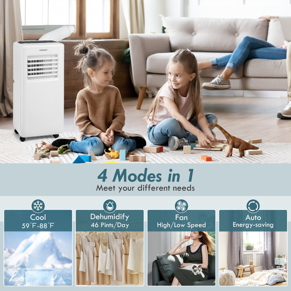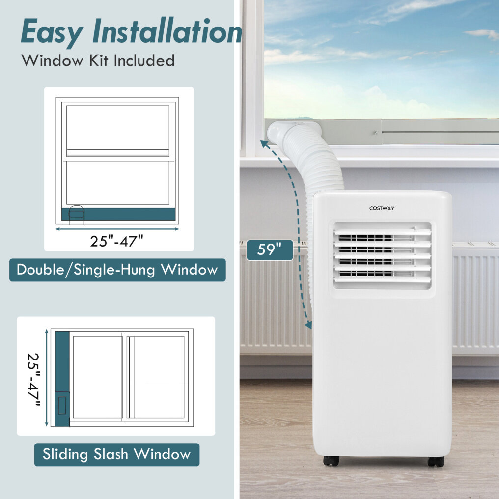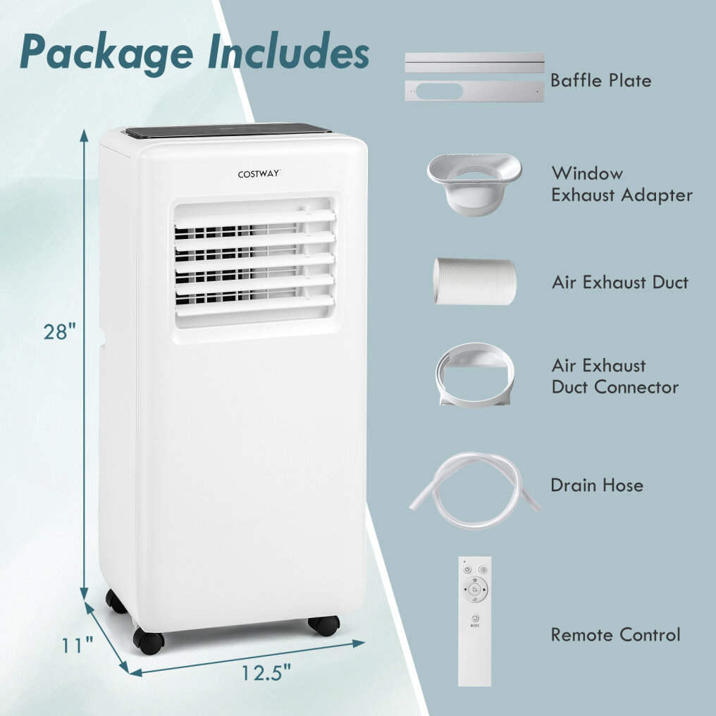 8000 BTU Portable Air Conditioner with Remote Control and LED Digital Display-White