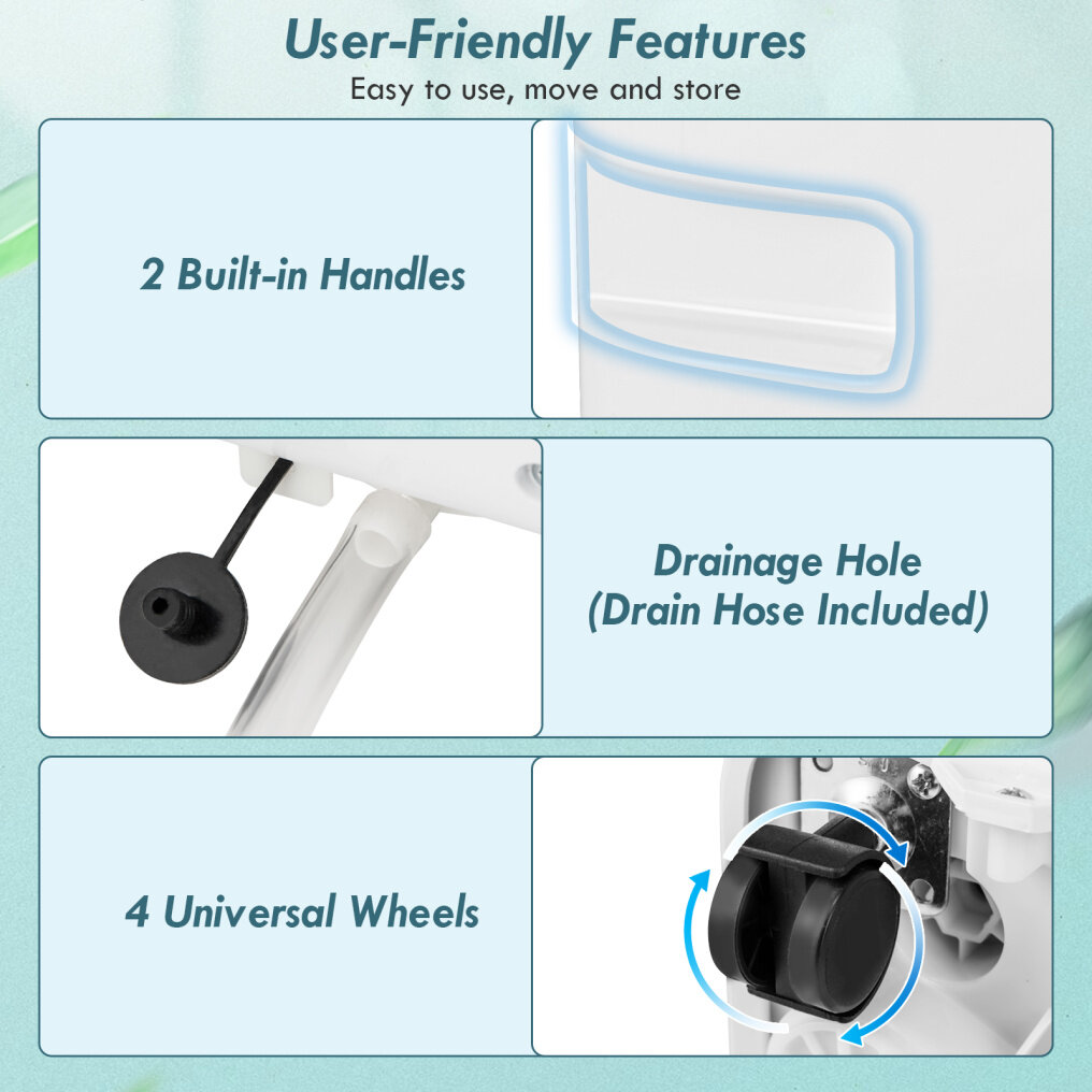 -The portable air conditioner for various settings is equipped with 4 universal wheels and 2 Side handles