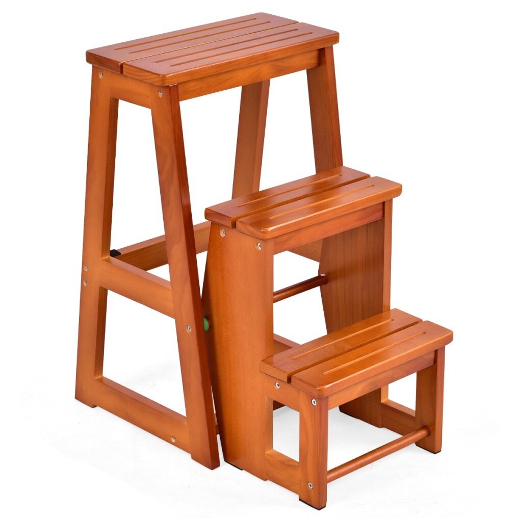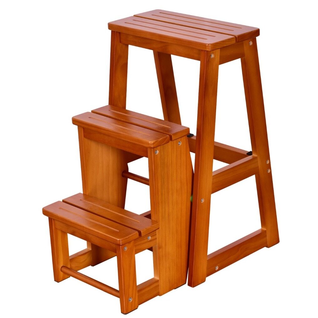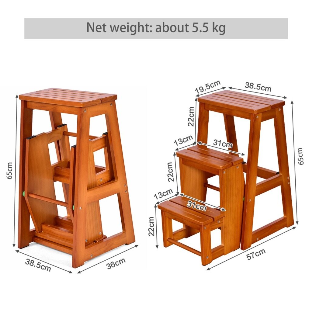 2-In-1 Stair Design: In order to play a greater role, we designed it as a two in one stair design by simply pushing. When unfurled, it is a three-tier ladder for you to pick up items that are high up. When it shrinks up, it is an ordinary stool, on which you can sit and rest.