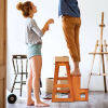 The simple folding push-pull design allows for a quick display of two different states. When unfurled, it can be used as a three-tier ladder, while when unfurled, it can be used as a simple stool. You can use our stair as a ladder in the cloakroom, or as a stool in the study, living room, doorway, bedroom or balcony.