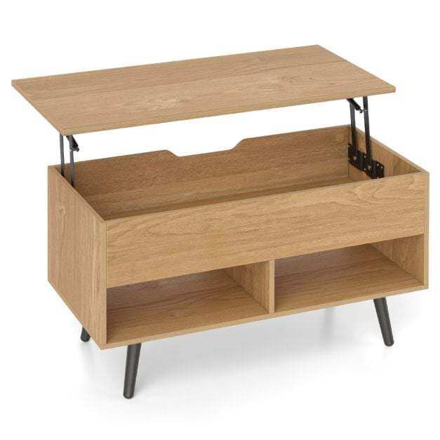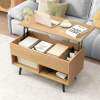 Hydraulic Elevating Top: This coffee table is equipped with a built-in metal lifting mechanism. If you raised the top, it would raise up automatically to save your energy. The whole lifting process of the desktop is smooth and silent without wobbling. And there are several crash pads on table frame to avoid damage caused by excessive tabletop impact.