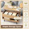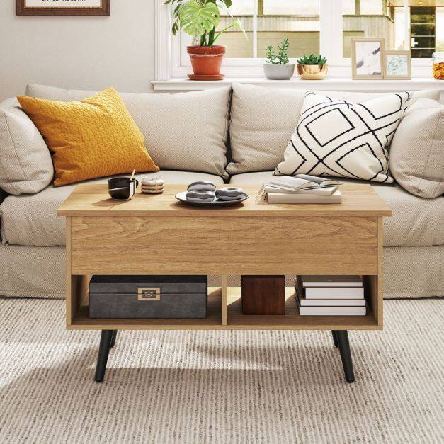 Ample Storage Space: This coffee table comes with 3 large storage sections, offering enough storage space. Two storage shelves in the bottom of the coffee table allow you to put items on it for convenient access. The hidden compartment beneath the tabletop for daily supplies can also keep dust out.