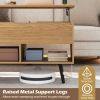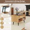 Compared with traditional coffee table, our product has 2 large open shelves and a spacious cabinet beneath the tabletop for daily supplies while providing you with spacious tabletop. Equipped with a built-in hydraulic lifting mechanism, the top of this coffee table can be raised effortlessly by anyone. With several crash pads on the table frame, the tabletop won’t be damaged due to excessive impact of closing the tabletop. You can reading, working or eating on this coffee table. Made of premium MDF and pine wood, this table will work for you for years to come. Adding a stylish modern coffee table in your room to refresh room decor.