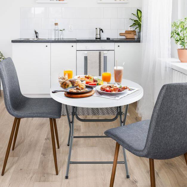 Ideal for Indoor and Outdoor Use: This plastic round table is not only suitable for outdoor use, such as the backyard, party, RV travel and campsite, but also for indoors, like the kitchen, restaurant, dining room and living room. Thus, the folding dining table provides an ideal area for small gatherings.