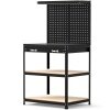 Pegboard with Square Holes: This work table is complete with 2 pieces of functional pegboards which offer extra storage space. The orderly arranged hanging holes on the pegboards are precisely crafted with square shape for higher stability.