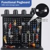 19 PCS Hanging Accessories: The workbench comes with 19 pieces of hanging hooks in different shape (single/double/square/circular) and tilt angles (90°/45°/straight). Therefore, you can hang multiple tools onto the pegboard, such as wrenches, screwdrivers and so on.