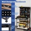 Perfect Tool Organizer: Featuring 1 top shelf, 2 pcs pegboards, a spacious tabletop, 1 large drawer and 2-tier shelf, the workbench will keep your workspace organized and efficient. All your tools, such as electric drill, drill bit and tool box, will be well classified, making every task more manageable and less time-consuming.