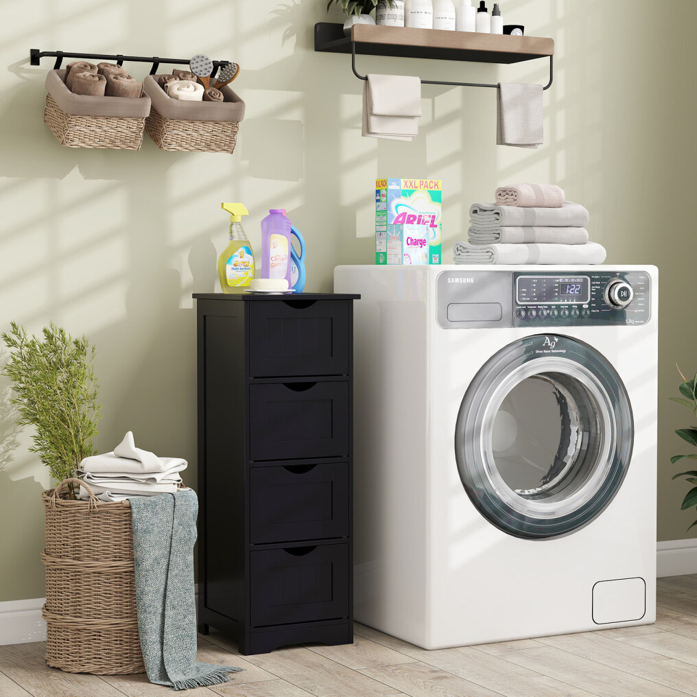 Concise Style, Wide Use: With concise and sleek design, this 4-drawer bathroom cabinet fits seamlessly in various living spaces. In addition to serving as a bathroom floor cabinet, it also works great as a versatile storage cabinet for your entryway, living room, laundry and more.