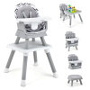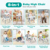 ● 6-in-1 Baby High Chair: This multifunctional highchair can be easily converted into various modes: full size baby high chair, dining booster seat, toddler chair, child stool, kids table and chair, building block table and chair. The tabletop has a grooved side and a smooth side for different uses. Suitable age: 6-36 months.