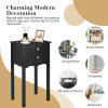 Constructed of high quality, non-toxic MDF material, this table is sturdy and reliable. Two slide-out drawers provide convenient space for placing small items. The beautiful black finish on the contemporary furniture will surely compliment any bedroom decor.