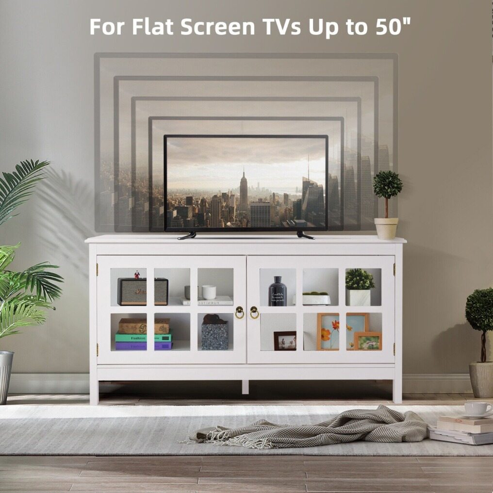 - Modern Contemporary Style: The exquisite pull ring handles on the glass door elevate this TV storage cabinet to a new level, elegant and charming. Designed in a simple compact outlook, this modern contemporary media stand fits well in various decoration styles to match the rest of your furniture.