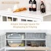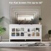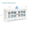 - Tempered Glass Cabinet with Cable Holes: This 2-door TV stand cabinet features high-strength tempered glass doors, which not only keeps your essential safe and clean, but also give a clear view for you to find the item you need by pulling the ring handle. Moreover, interior cable holes keep your TV unit free of clutter, helping neatly organize cables and keep your family safe from electrical hazards.