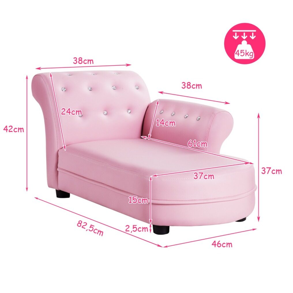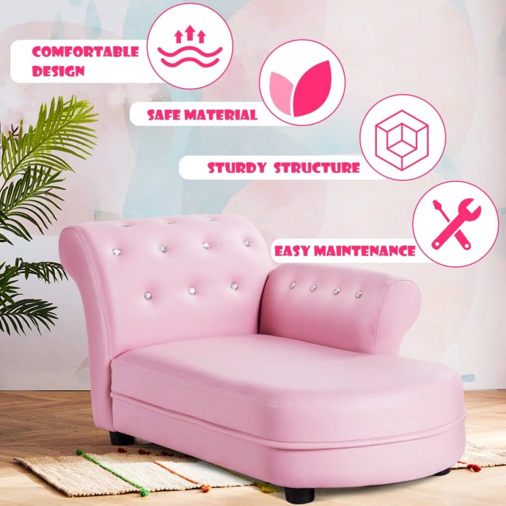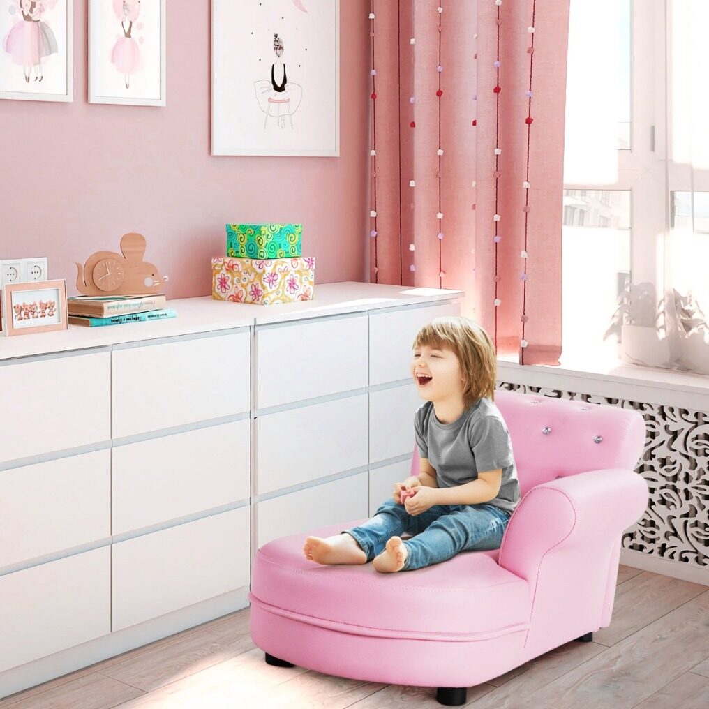 Cute Appearance with Gem: The wide backrest and armrests are embedded with sparking crystals, which makes this lounge sofa look elegant and sophisticated. And this pink princess sofa with lovely appearance can provide an appealing and relaxing place for your kids to watch TV, read books, eat snacks, play games or just relax.