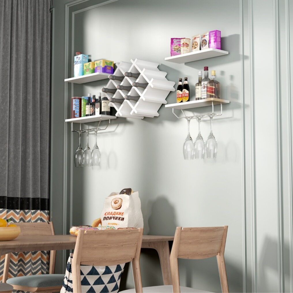 Multifunctional and Practical Storage: The wine rack has three functional storage space for different storage purposes. The glass holder for hanging your glass and great for daily use. Your wines can be stored in the wine rack with 8 bottles available. The 4 shelves can display extra bottles or decorations.