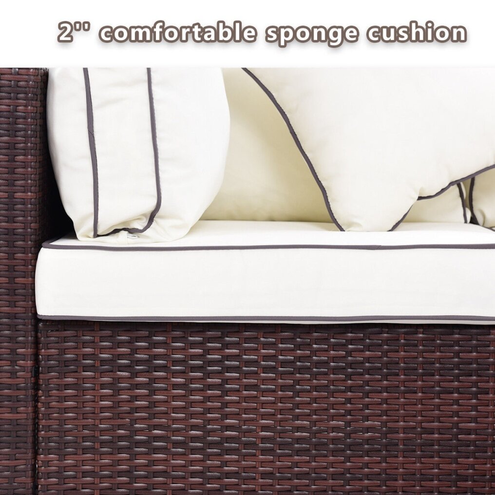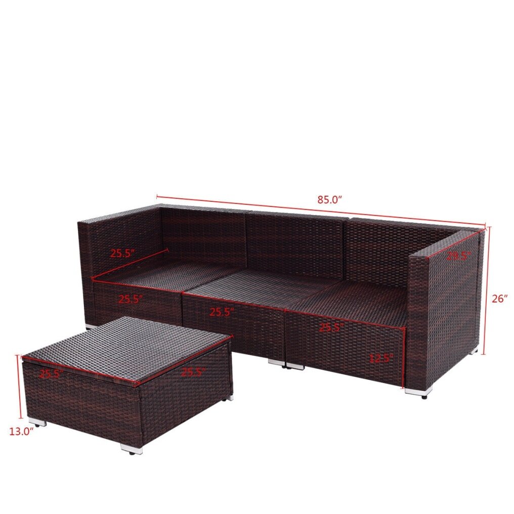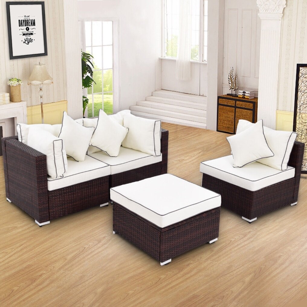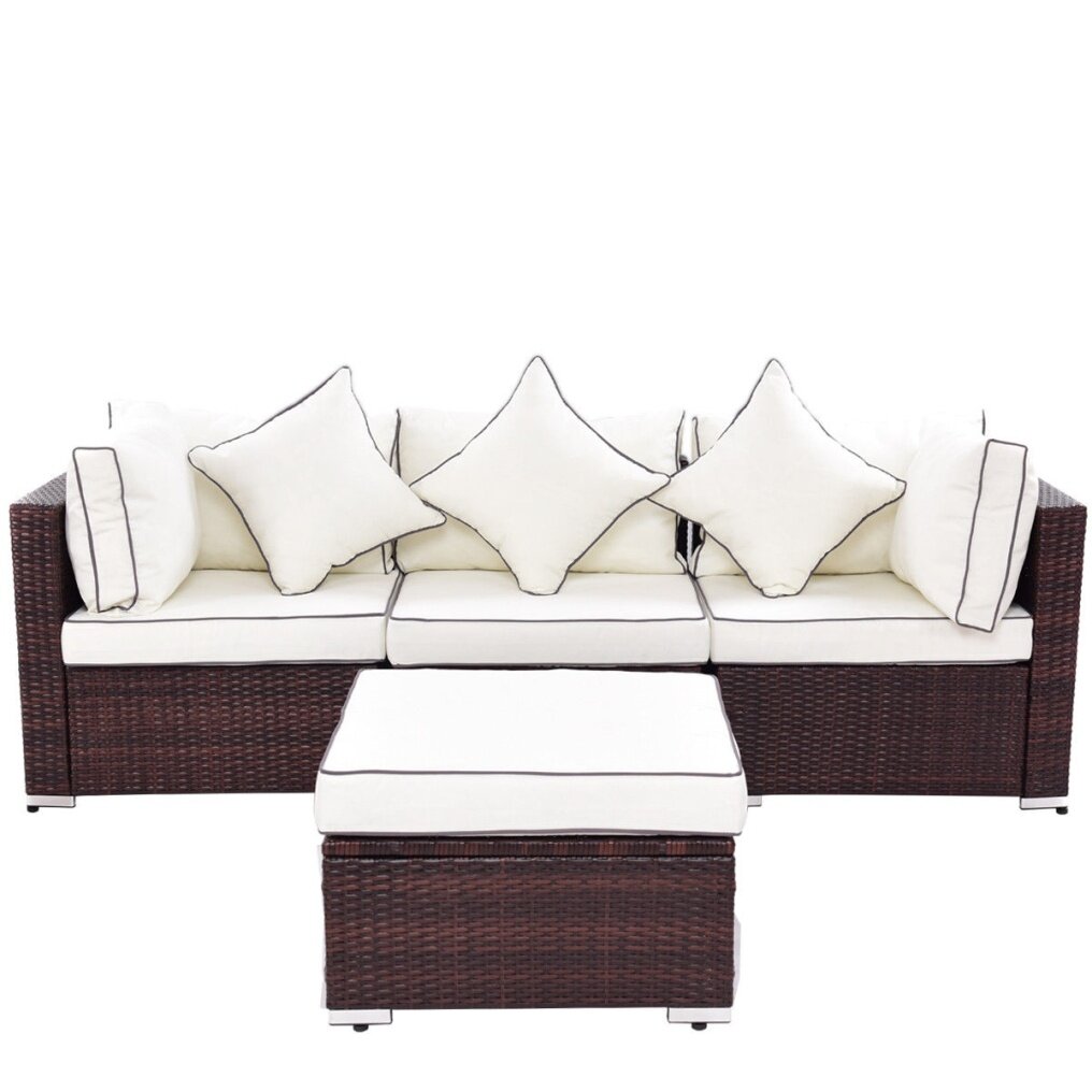 It will be a great addition to any outdoor living space. The sofa and chairs feature exquisitely woven wicker with gently sloping curves and soft yet supportive cushioning. The seat cushions are designed to resist the elements and stay beautiful through years of use. It is perfect for the pool side, deck or patio, these cushioned seats will let you and your guests to sit back, relax and enjoy the great outdoors.