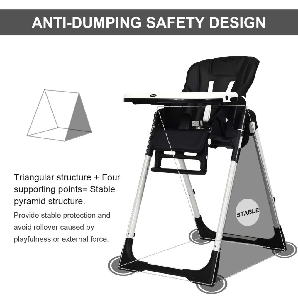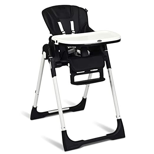 Easy To Clean With Detachable Design: Cleanliness has always been a top concern for baby products. Contact with detachable trays and seat cushions, this baby high chair is easy to clean and maintain after daily use. The removable PP top tray is also dishwasher safe. And the PU leather cushion is waterproof and you just need to wipe the smudges with a clean cloth. A 5-point safety harness ensures security for your little baby. All the corners of this baby highchair are smooth without sharp edges.