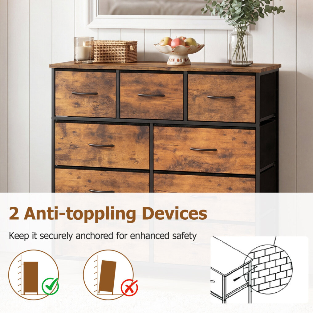 ● Easy-to-Use Fabric Drawers: The fabric drawers of this storage dresser include anti-falling stoppers that keep them securely in place during use. Furthermore, these drawers are also easy to remove and unfold, resulting in a quick and simple assembly process that requires minimal effort or tools.