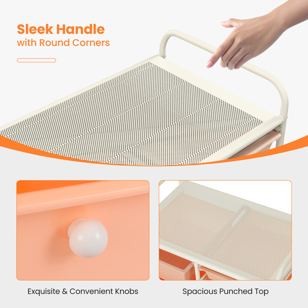 ● Easy Assembly and User-friendly Design: So simple its structure it is that there is no need to worry about how to put all parts together. Round knobs equipped there make it easy to either open or close the drawer. Besides, metal handrails are convenient to push the cart.