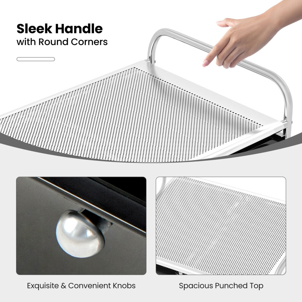 ● Easy Assembly and User-friendly Design: So simple its structure it is that there is no need to worry about how to put all parts together. Round knobs equipped there make it easy to either open or close the drawer. Besides, metal handrails are convenient to push the cart.